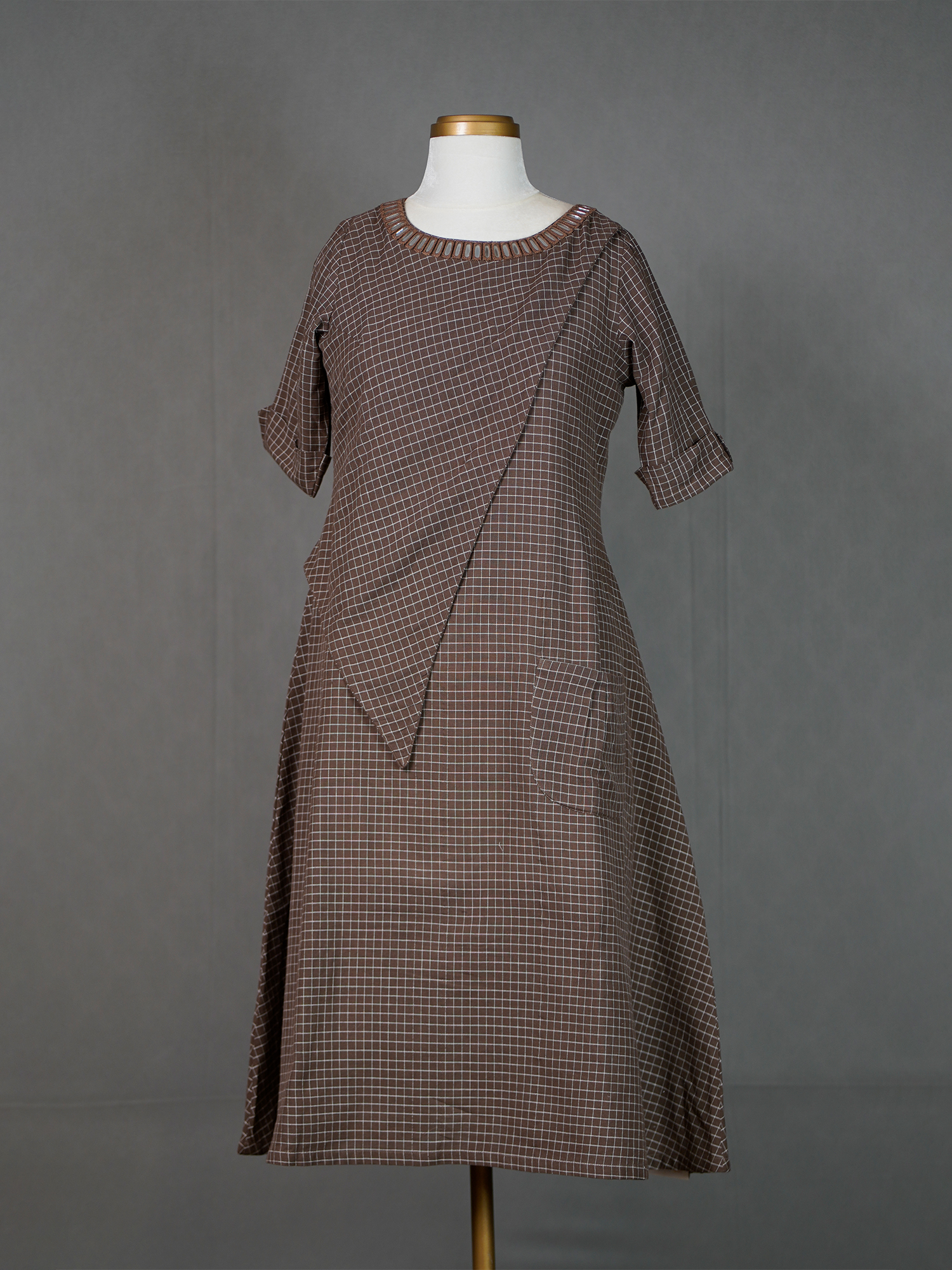 Brown Handwoven Checked A-Line Kurti With Mirror Work On Neckline | Mamatha Tulluri