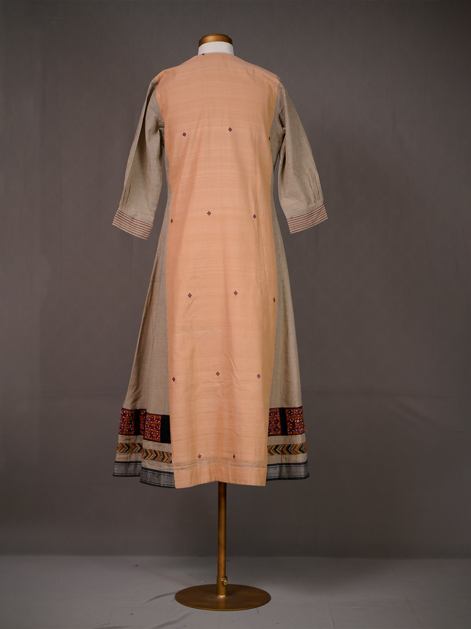 Brown Handwoven Kurti with Peach Panel and Block Print Borders | Mamatha Tulluri