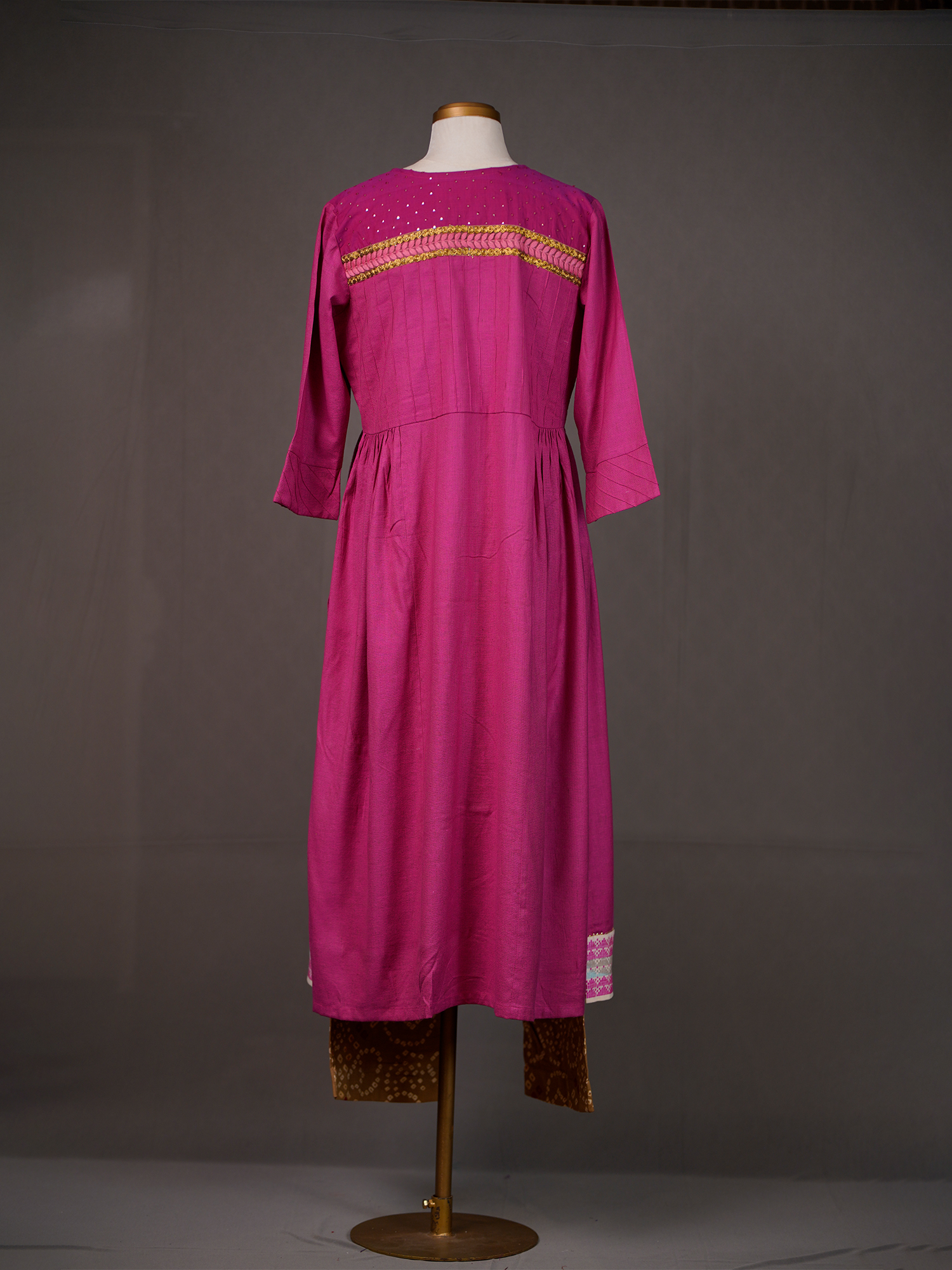 Onion Pink Handwoven Kurti With Kutch Work and Pintuck Bodice