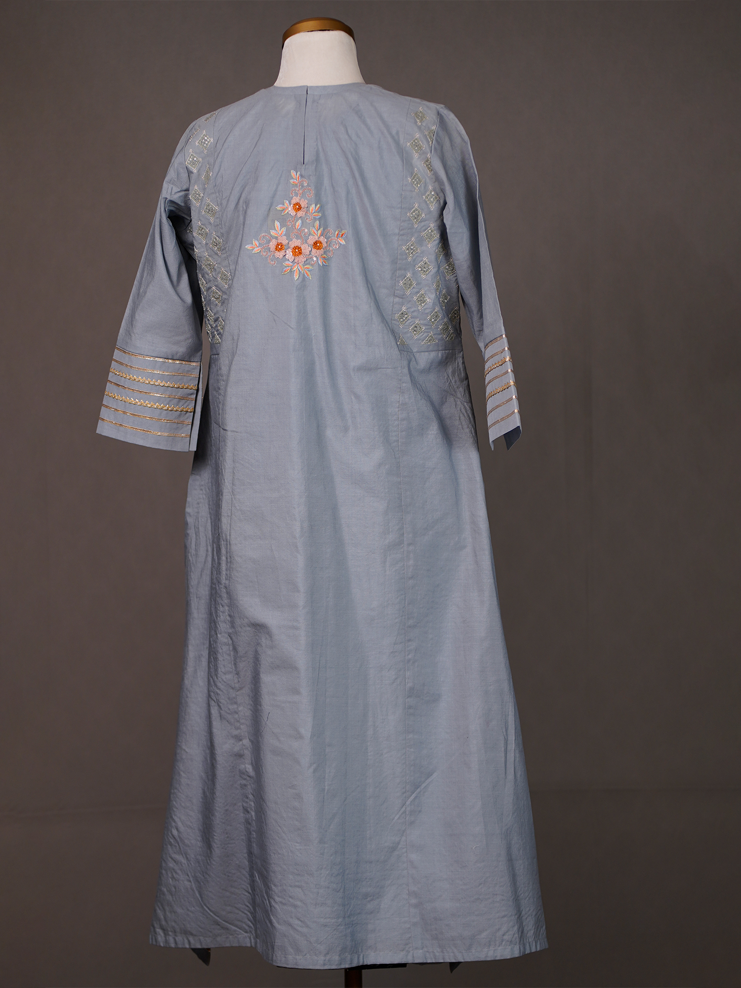 Grey Chanderi Kurti with Embroidery, Sequin Work, Zari Borders