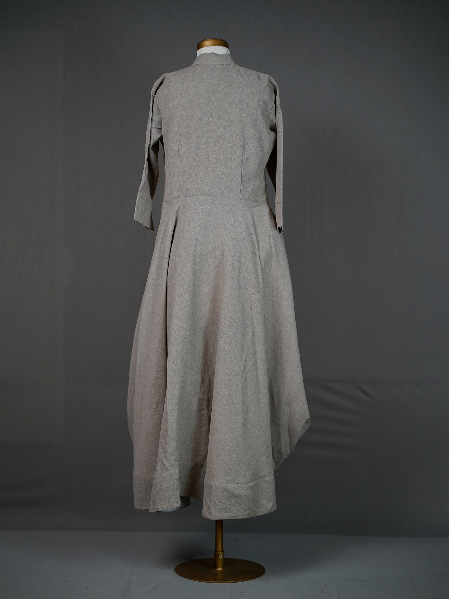 • Grey Mulmul Cotton Floor-Length Buttoned Dress with Thread Buttis