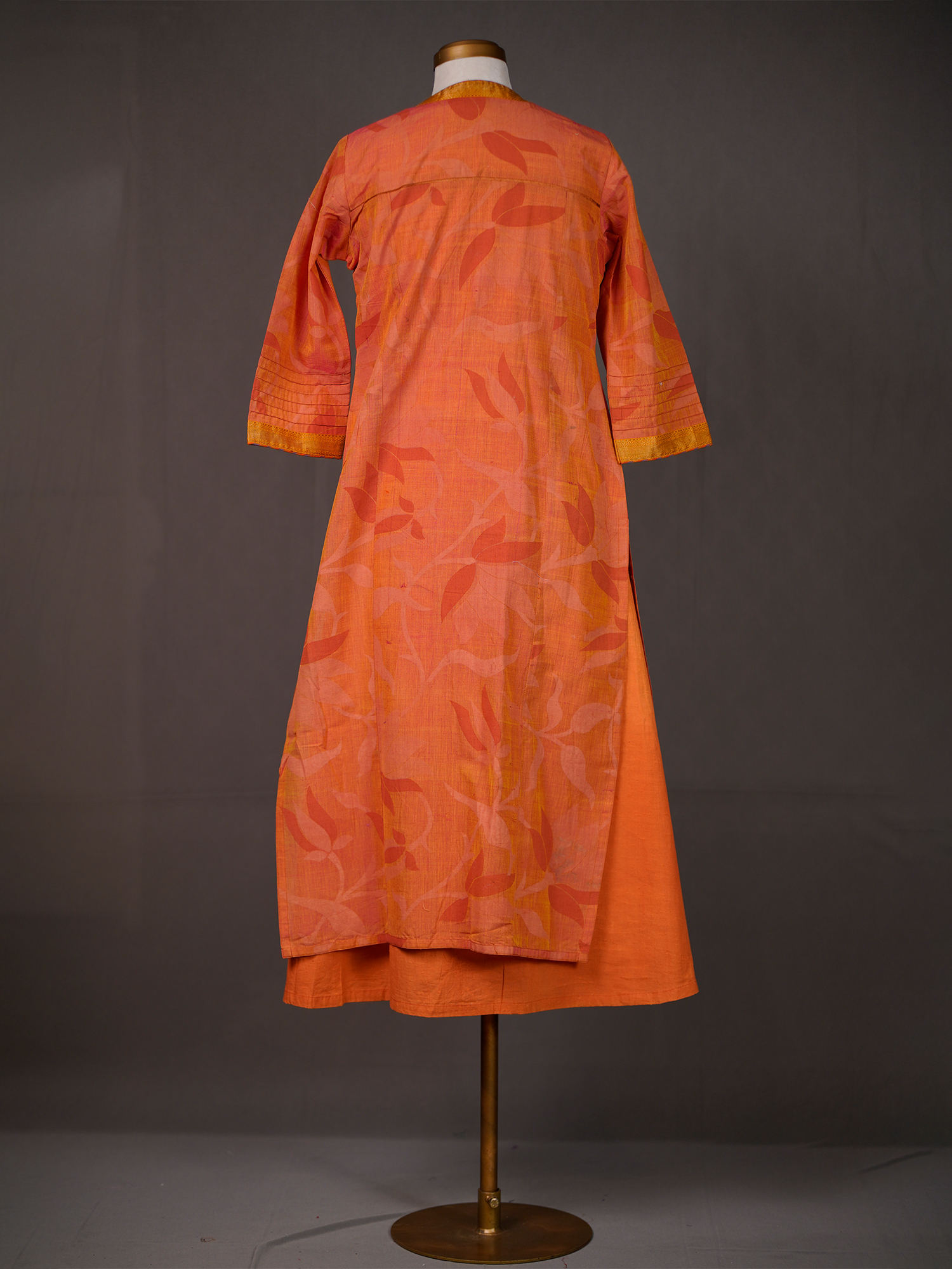 Orange Cotton Sleeveless Kurti Topped with Printed Front Open Koti | Mamatha Tulluri