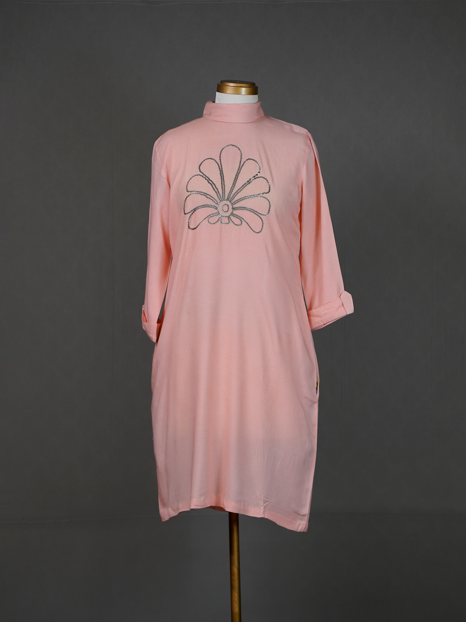 Peach Kurti with Stylish Sequins Motif and Full Sleeves