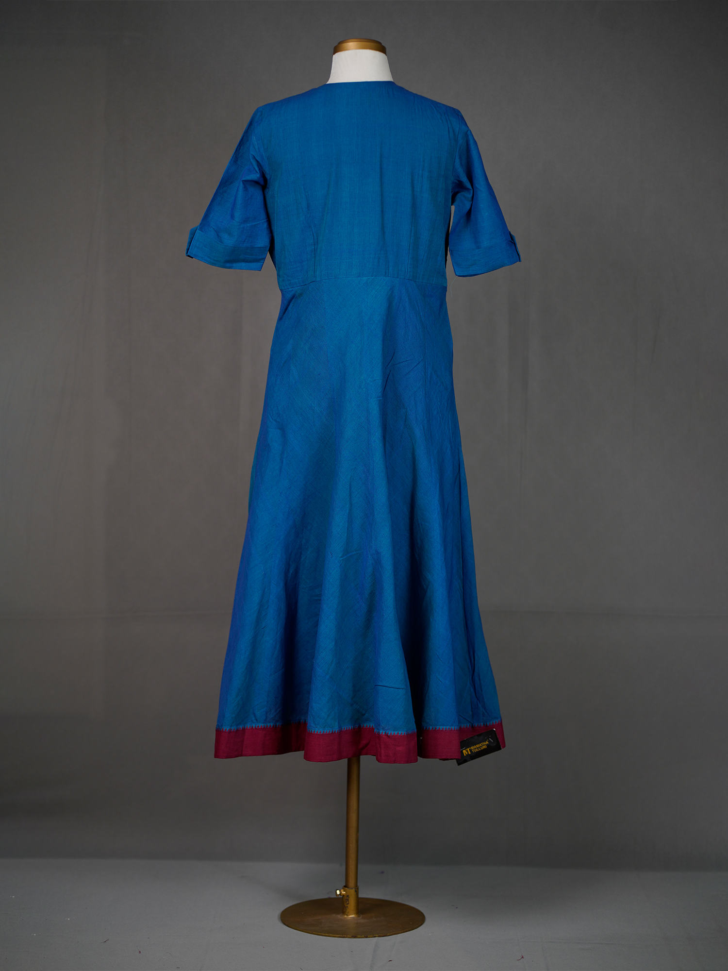 Plain Blue Handwoven Kali Kurti with Printed Buttons n Front Slit | Mamatha Tulluri