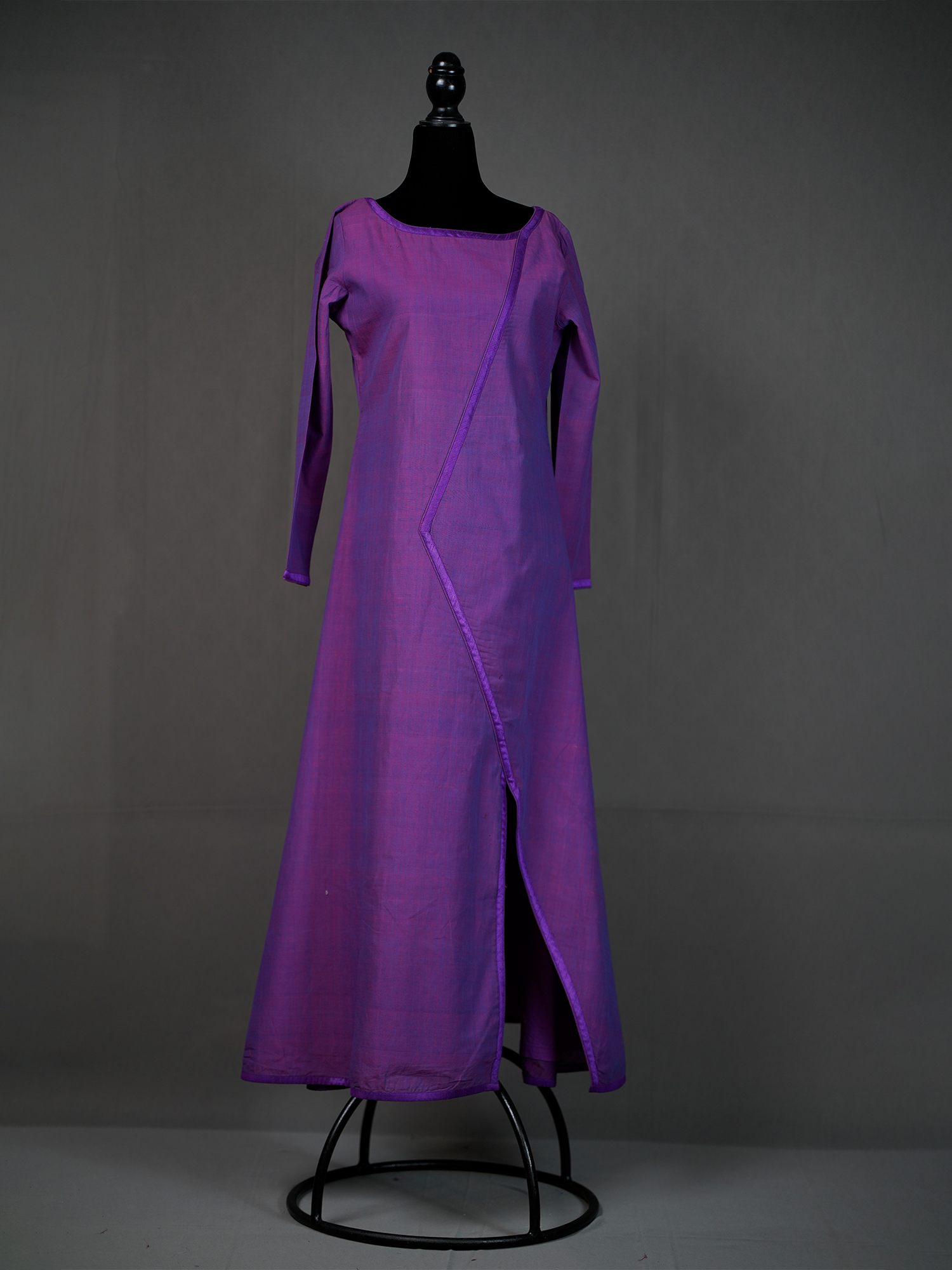 Plain Purple Handwoven Long Kurti with Stylish Cut and Side Slit | Mamatha Tulluri