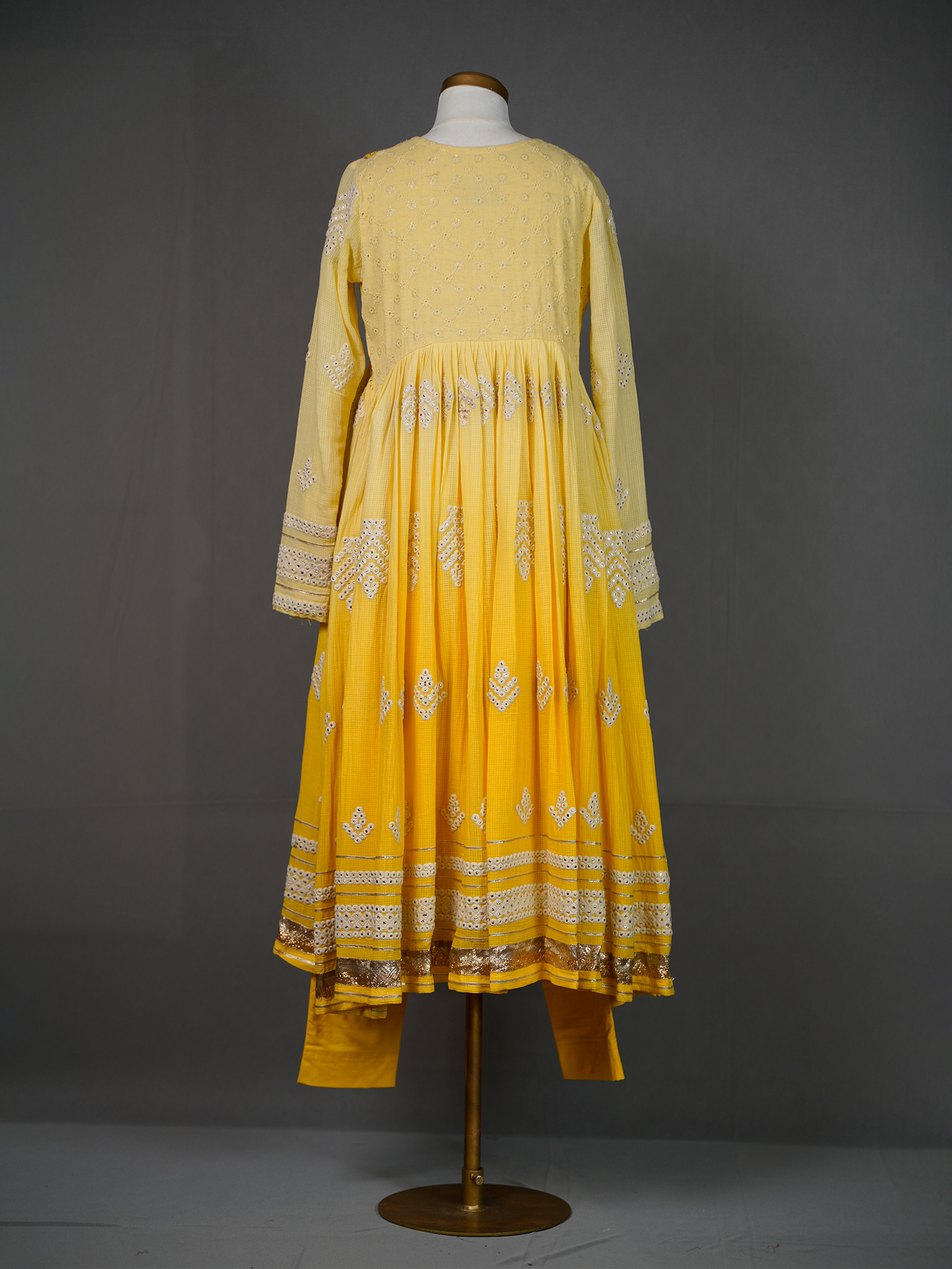 Yellow Shaded Anarkali Kurti with Mirror Embroidery and Pants