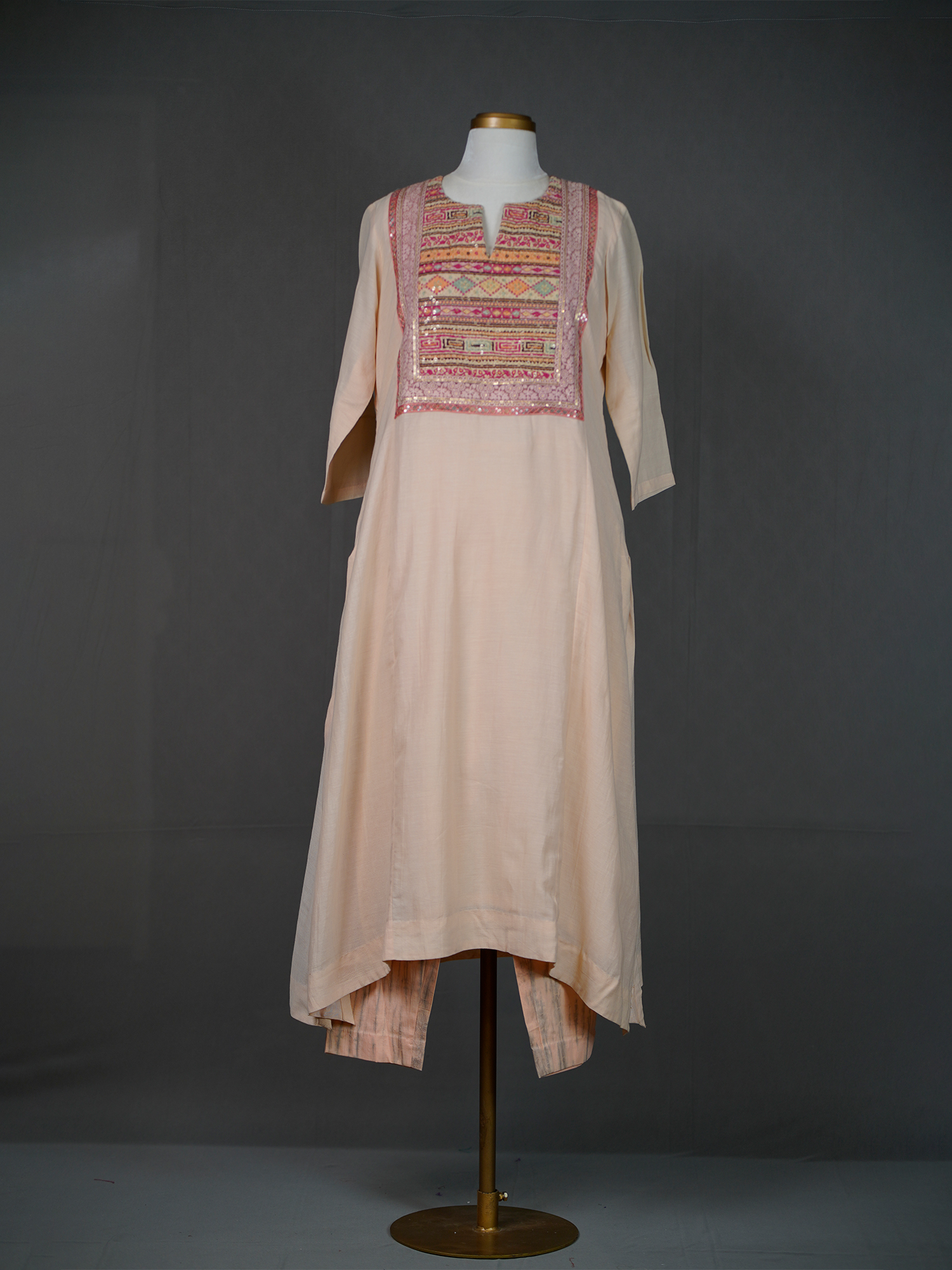 Beige Handwoven Kurti with Thread and Sequins Work Yoke n Pants | Mamatha Tulluri