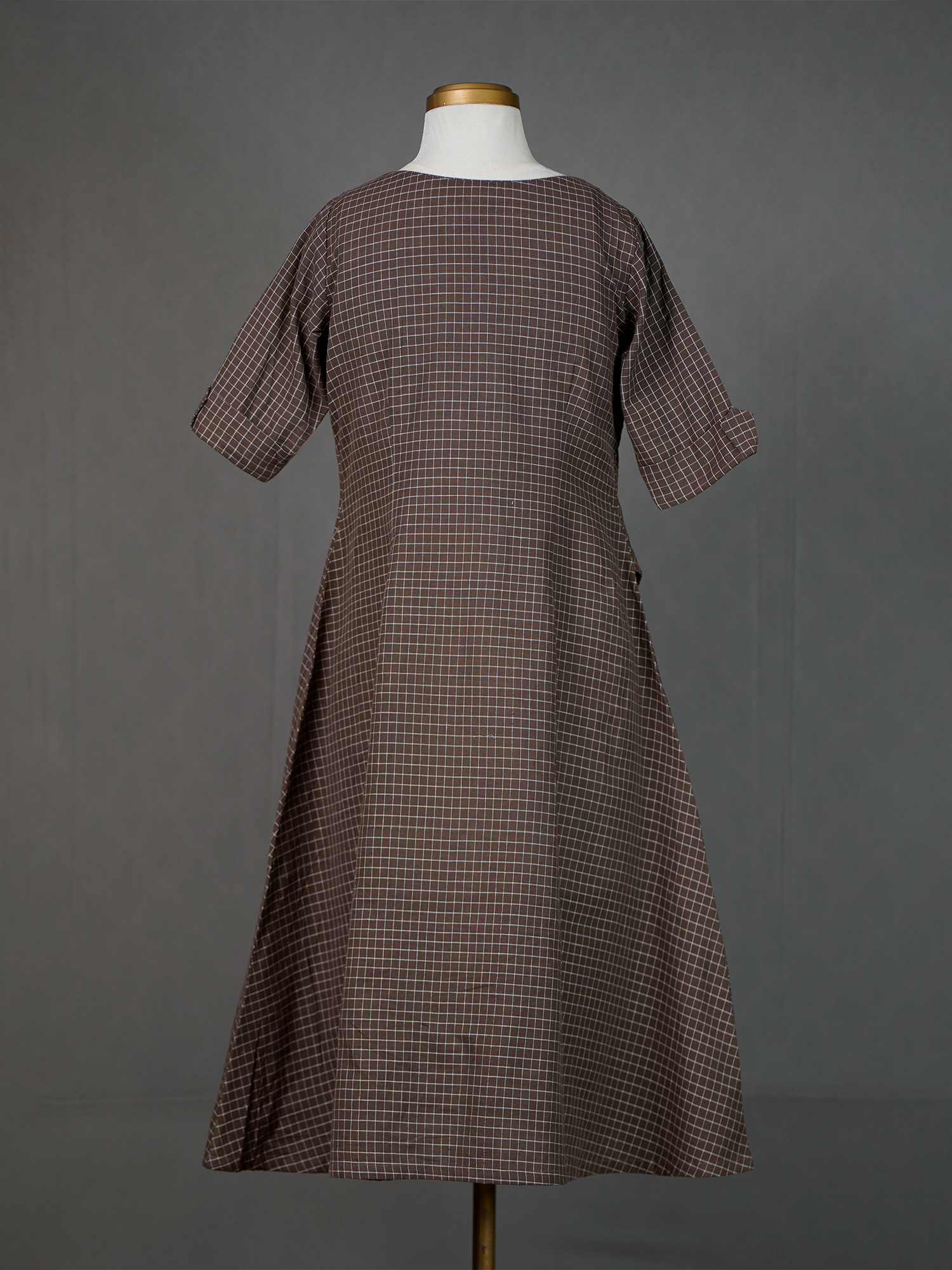 Brown Handwoven Checked A-Line Kurti With Mirror Work On Neckline | Mamatha Tulluri