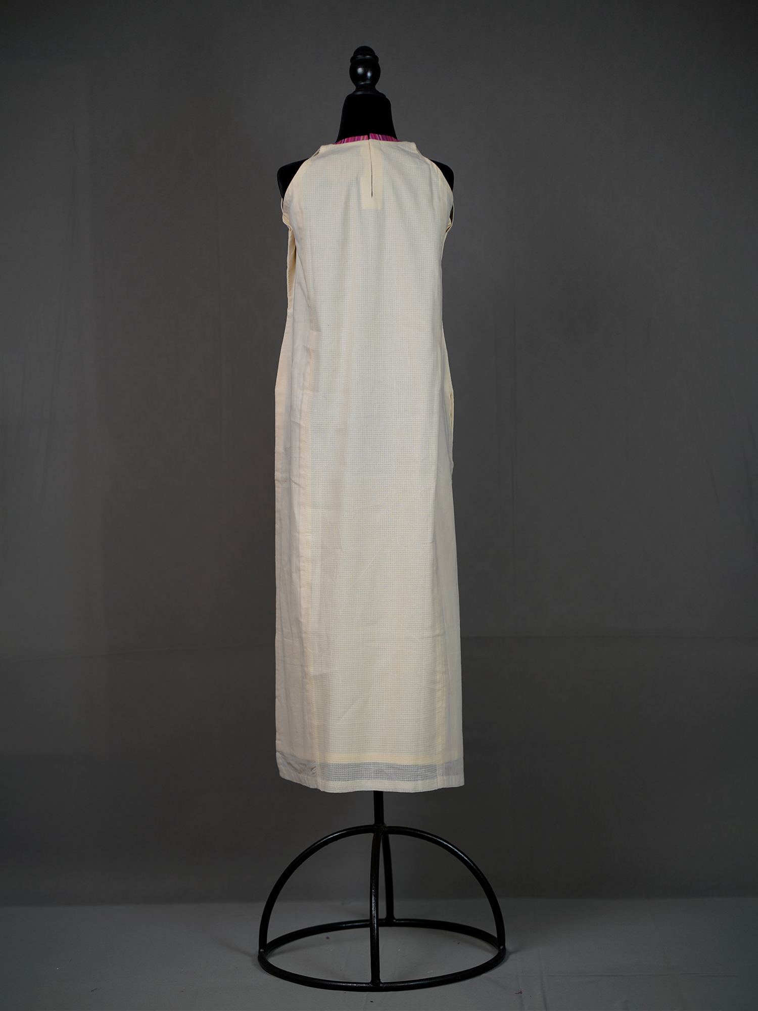 Grey and White Handwoven Kurti With Ikkat Panels and Thread Work