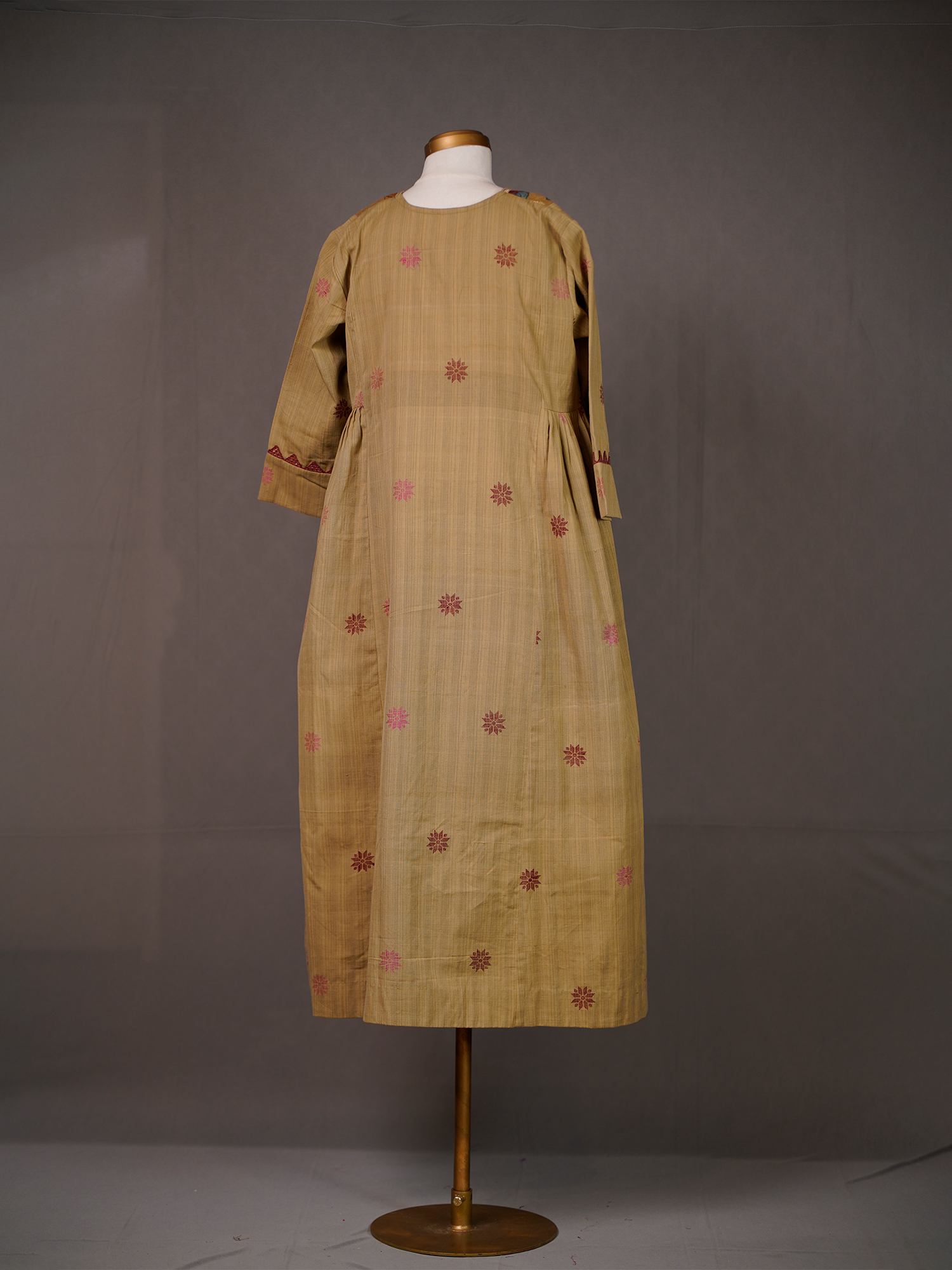 • Grey Mulmul Cotton Floor-Length Buttoned Dress with Thread Buttis