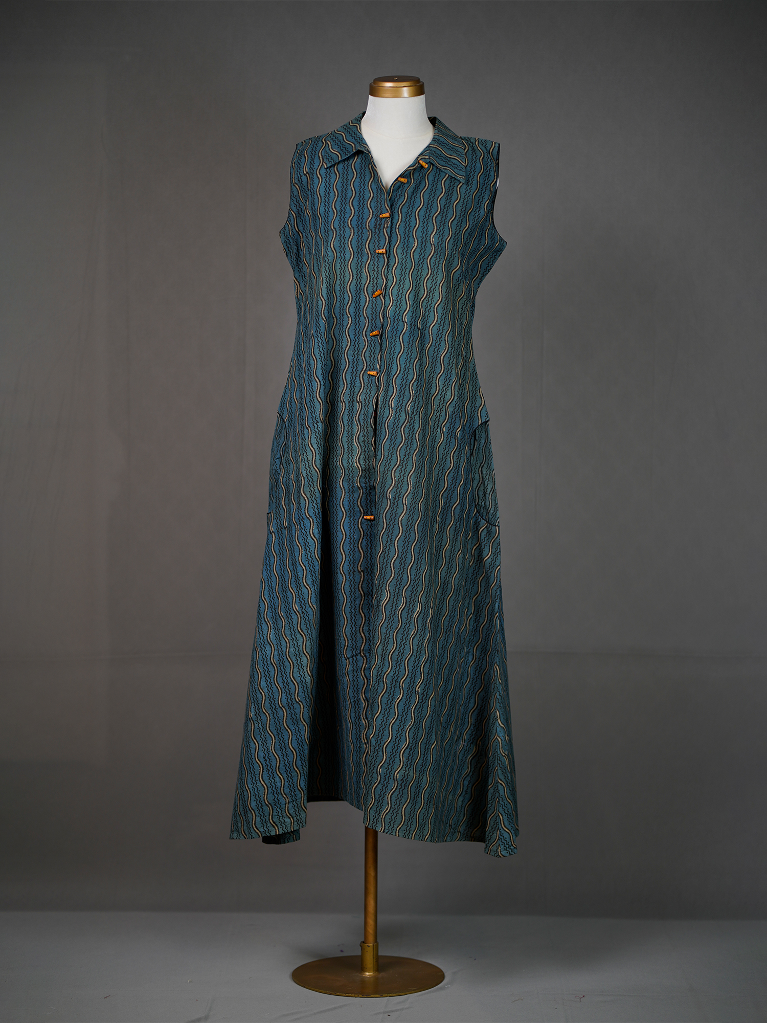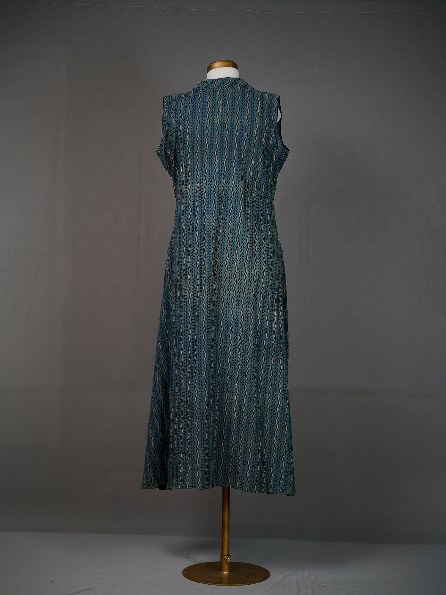 • Dark Blue Handwoven Floor-Length Dress with Thread Embroidery