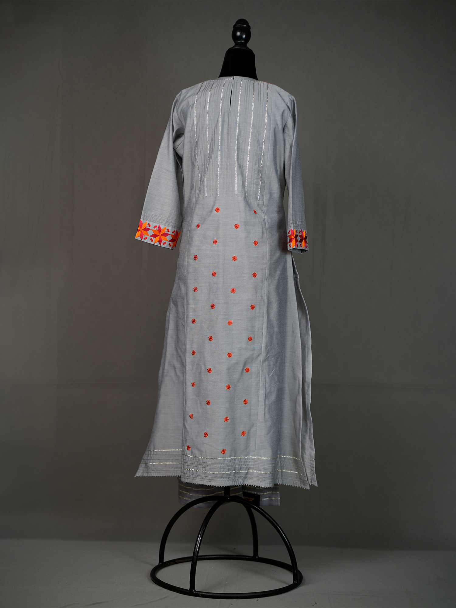 Grey Kurti with Heavy Thread Work, Zari Border, Dupatta and Pants