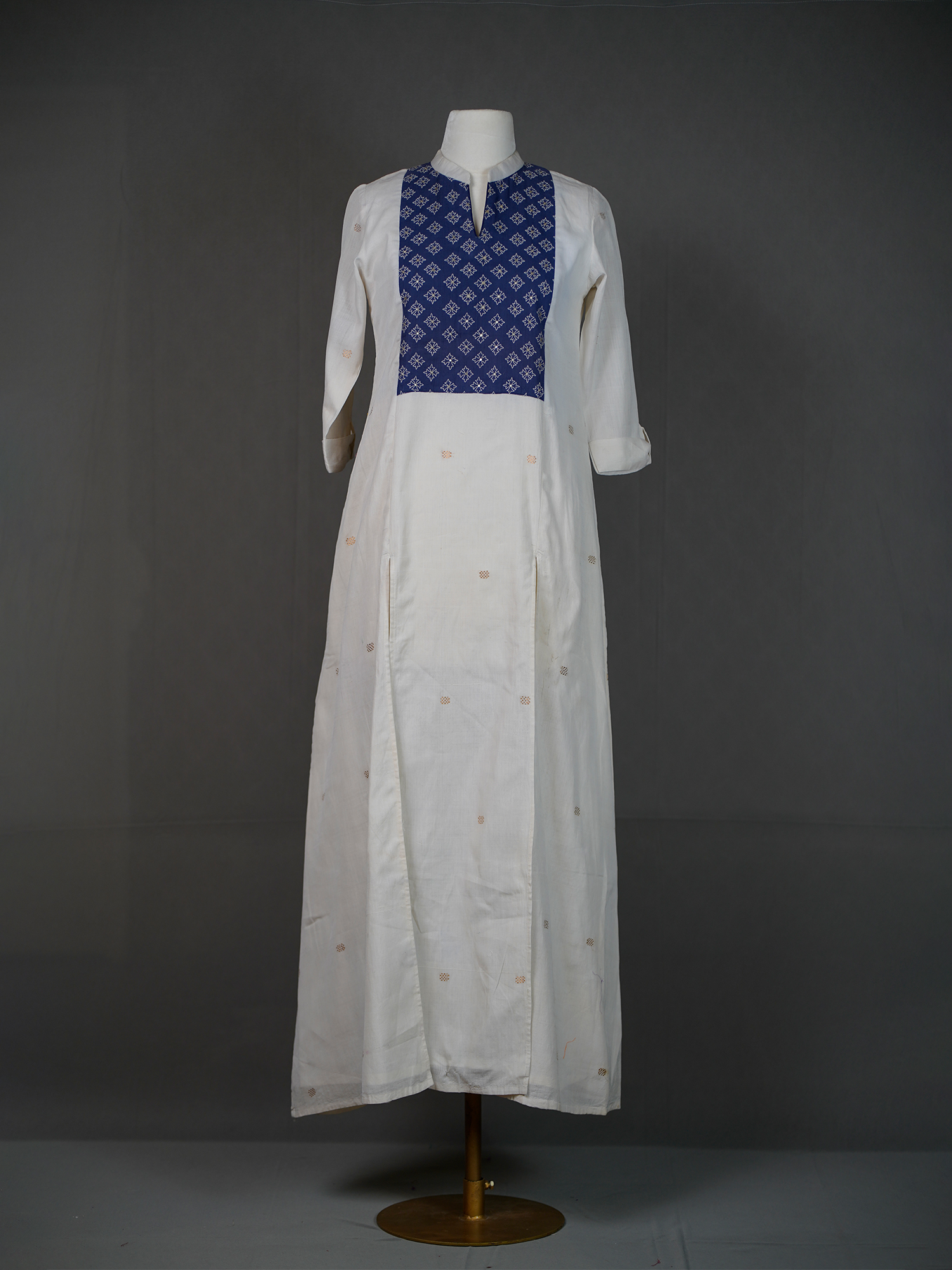 Off White Handwoven Kurti With Thread Embroidery On Blue Yoke | Mamatha Tulluri