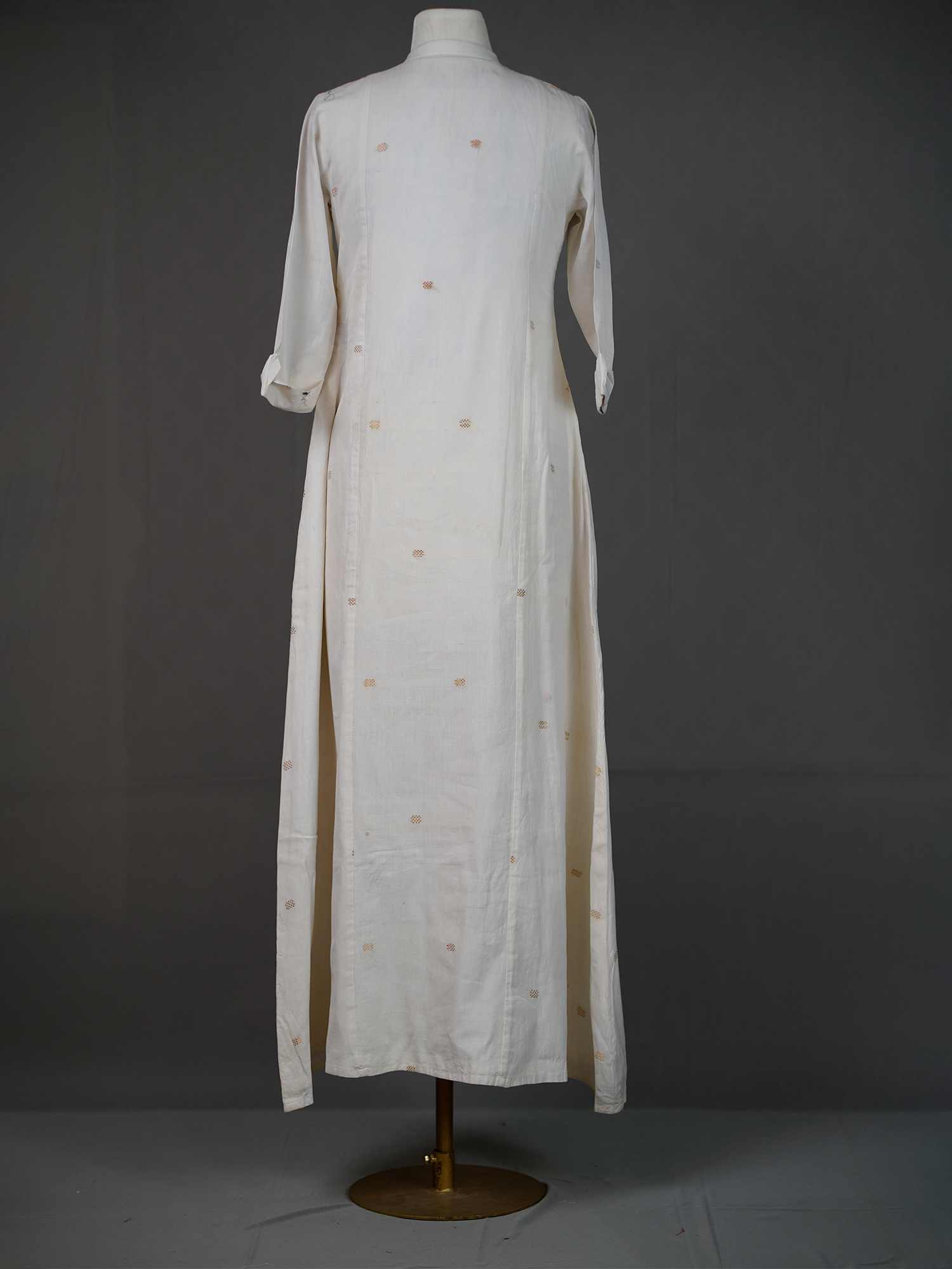 • Grey Mulmul Cotton Floor-Length Buttoned Dress with Thread Buttis