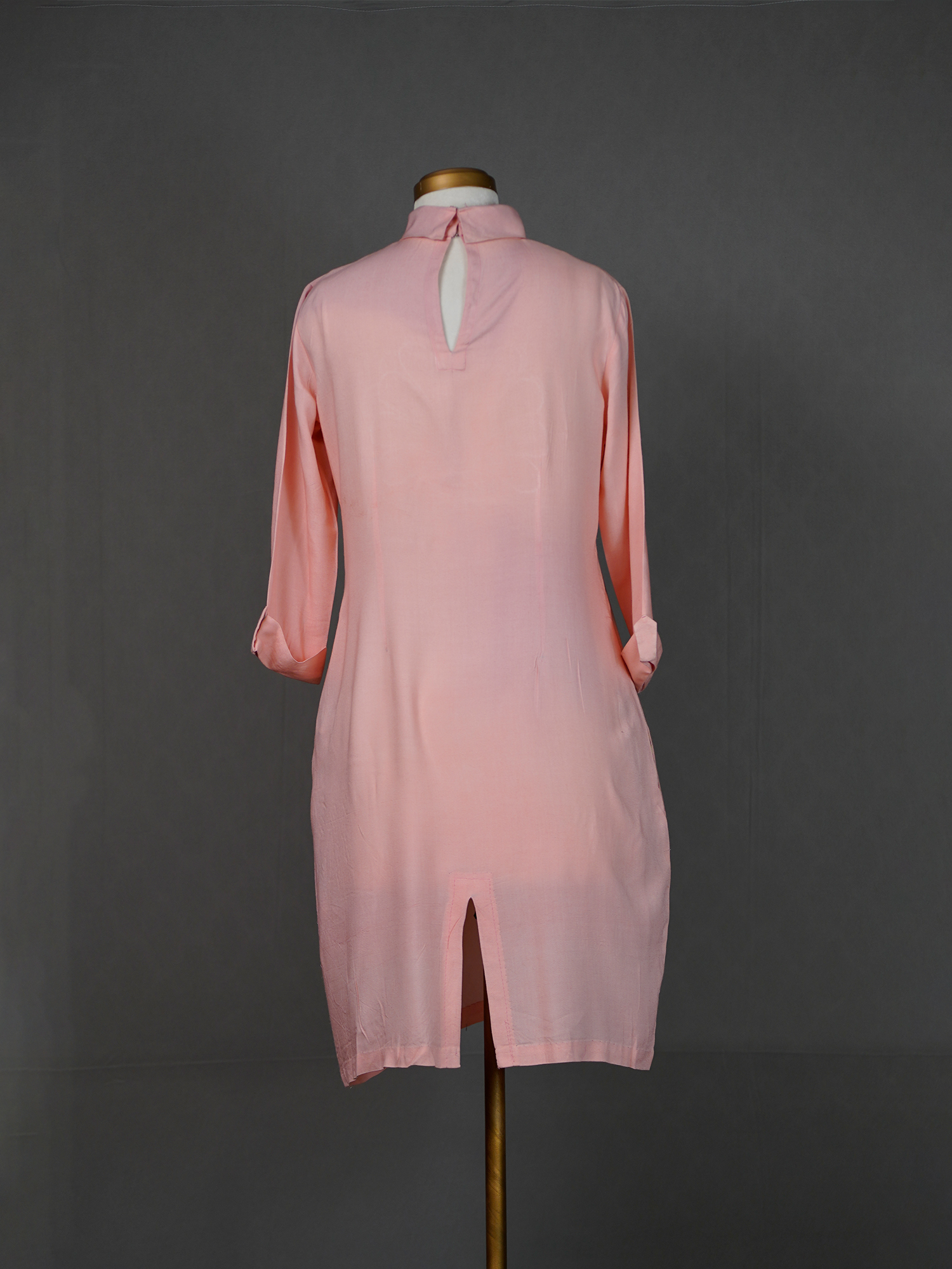 Onion Pink Handwoven Kurti With Kutch Work and Pintuck Bodice