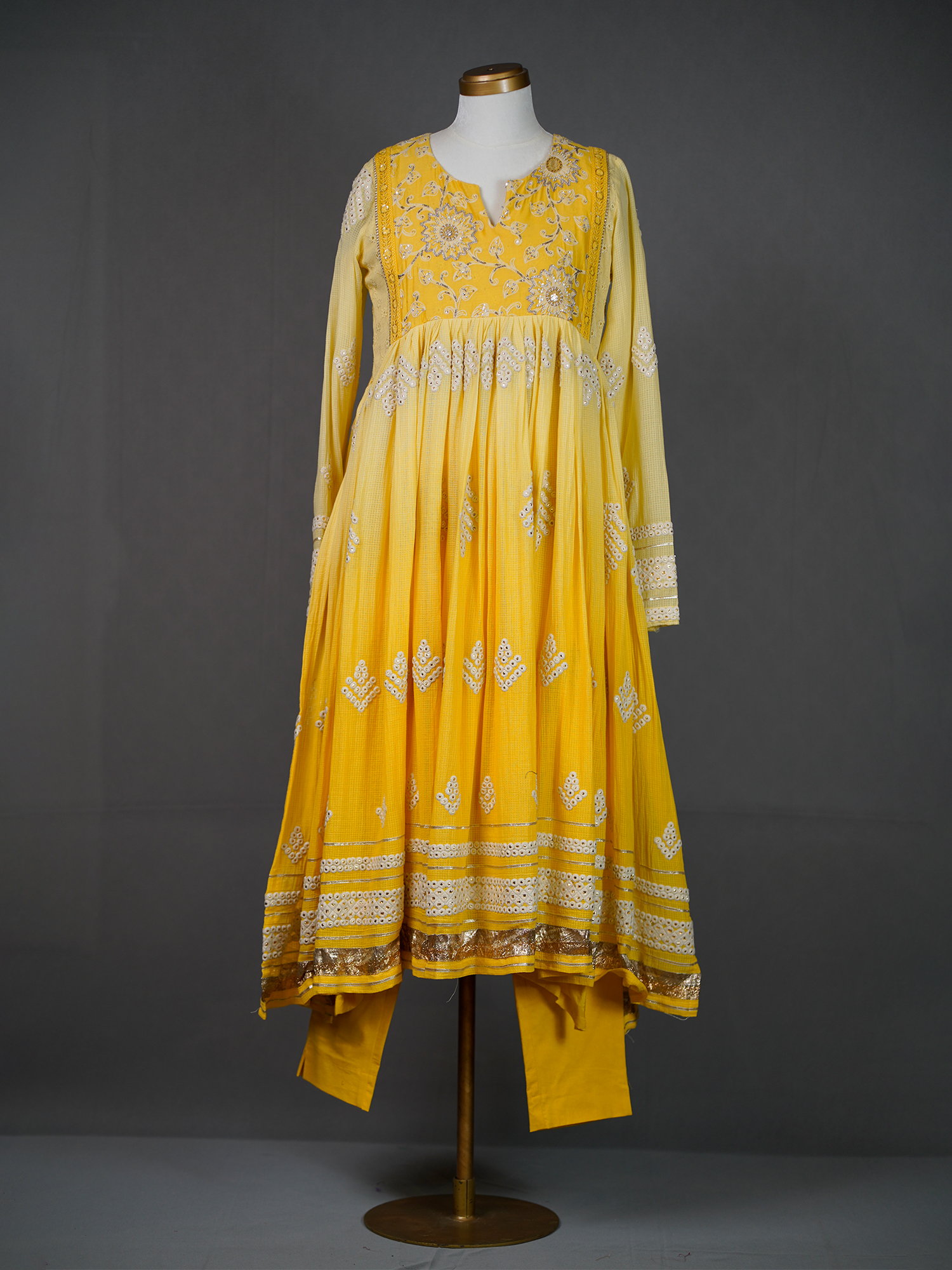 Yellow Shaded Anarkali Kurti with Mirror Embroidery and Pants